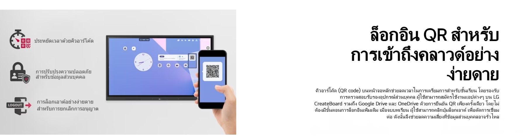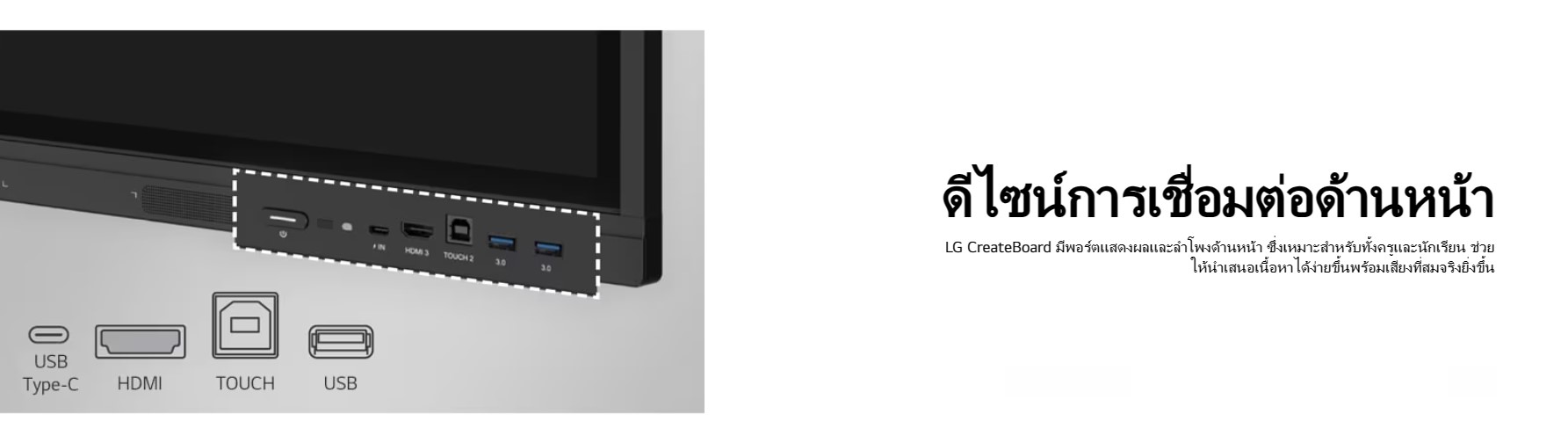 ยกระดับห้องเรียนและการประชุมด้วยจอสัมผัสอัจฉริยะ LG CreateBoard รุ่น 65TR3DK ขนาด 65 นิ้ว ที่ออกแบบมาเพื่อการใช้งานในสถานศึกษาหรือองค์กร สร้างประสบการณ์การเรียนรู้และการทำงานร่วมกันได้อย่างเต็มที่ด้วยฟังก์ชันที่หลากหลาย ไม่ว่าจะเป็นการใช้งานเทมเพลตการสอน การแชร์หน้าจอแบบไร้สาย และการบันทึก-นำเข้าไฟล์จาก Google Drive และ OneDrive นอกจากนี้ยังมีระบบ Multi Touch ที่สามารถตรวจจับการสัมผัสได้ถึง 40 จุดในเวลาเดียวกัน เพื่อเพิ่มการมีส่วนร่วมในการเรียนรู้