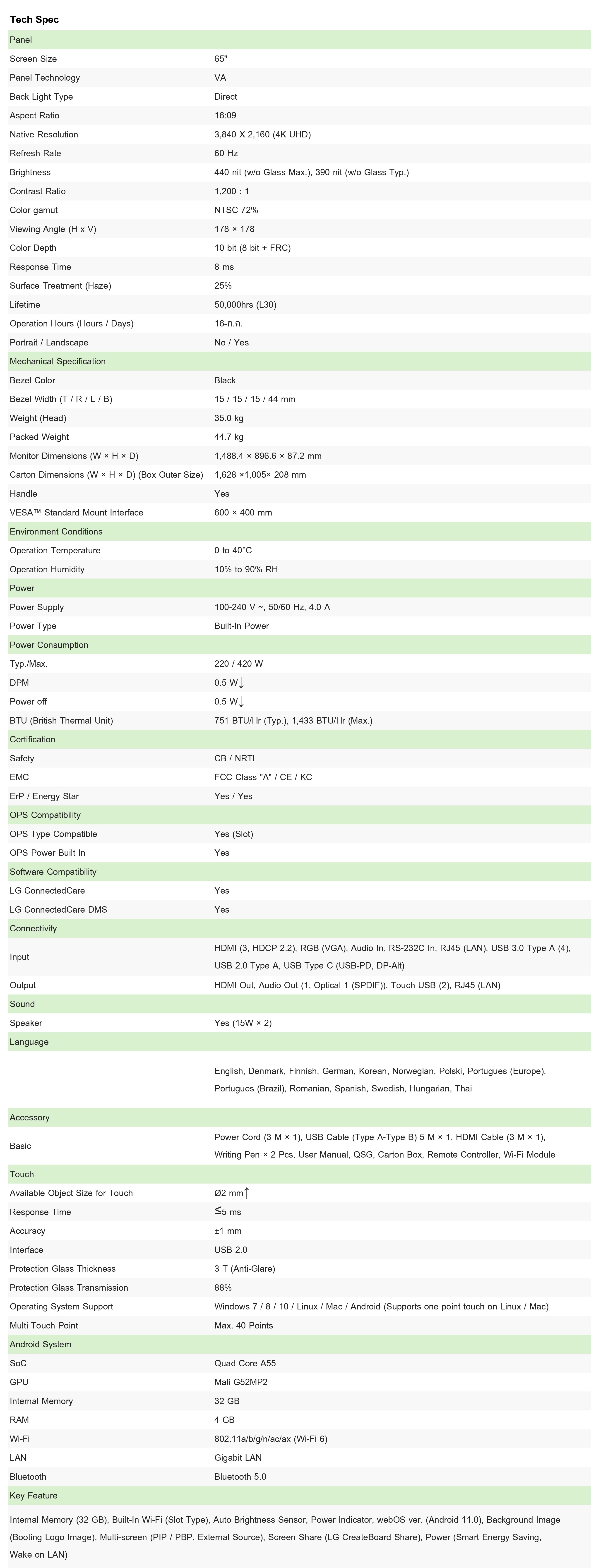 - จอสัมผัสอัจฉริยะขนาด 65 นิ้ว 4K UHD